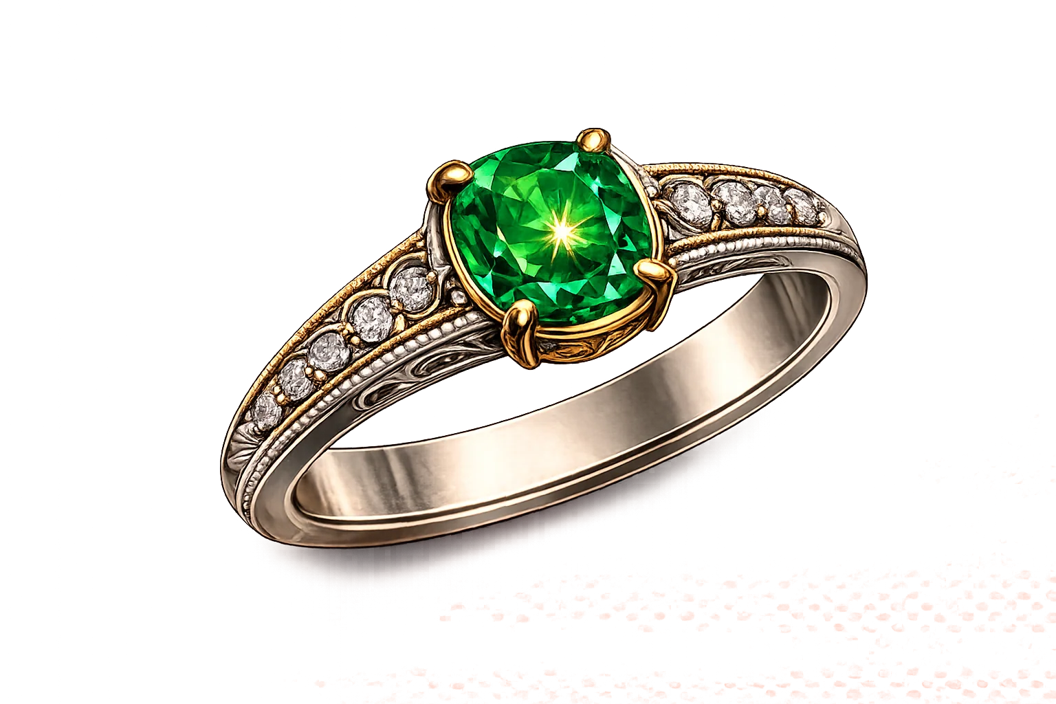 Wear Emerald, Panna, in silver or bronze on the little finger after chart verification.